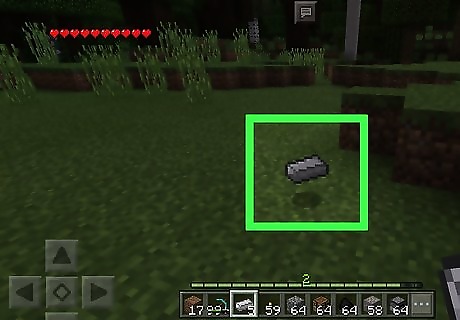 Continue down from spawn and eventually you should see iron and coal on the side; collect them but do not smelt anything yet!