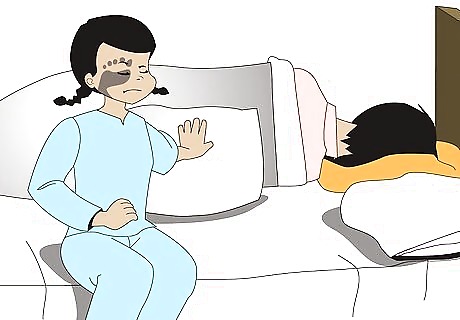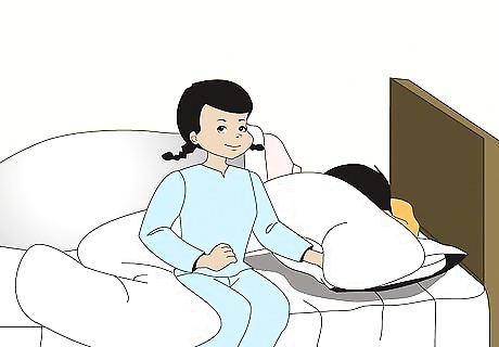 Use pillows to make your side of the bed more comfortable. While you'll likely find yourself sleeping in a different bed than before, that doesn't mean you have to use different pillows as well. If your old pillow was really comfortable and you still have it with you, why not keep using it? Sharing a bed with someone else is already a big change to your sleeping environment, there's no need to change it even more, and thus make it harder to get used to, by getting rid of what helps you to sleep comfortably. Body pillows can also help with getting comfortable. Although they can be expensive, if you're not used to sleeping with a body pillow and would like some extra cushioning for your arms and legs, consider getting one. Alternatively, you can use well-placed regular pillows to achieve similar support.
