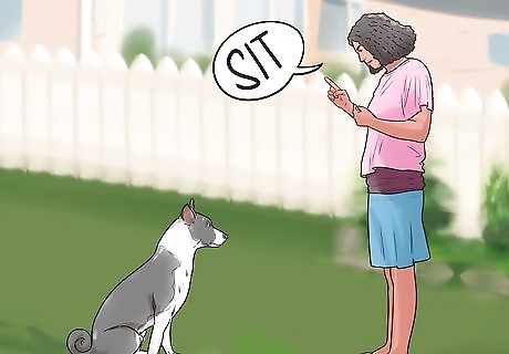 Control the feeding situation. Teach your dog a few basic commands, such as sit and stay. This will allow you to control the feeding situation and can help reduce growling and other aggressive behaviour. For example, give your dog the stay command and have them stand a few feet away from you. Drop their food into the bowl and then, once you are ready say “ok.” Then the dog can approach the food and eat. These commands allow you to be the one in charge of feeding. Try making it increasingly challenging for your dog by changing the “release word” so your dog has to listen carefully for the correct release word.