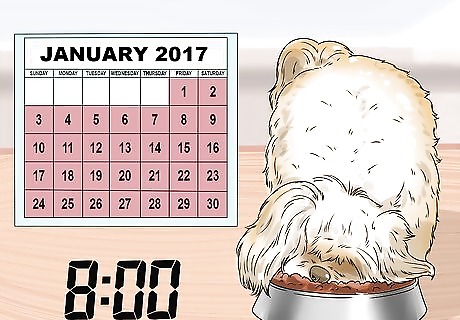 Feed your dog at the same time each day. You can also manage signs of food aggression by creating a mealtime routine. In some instances, food-based aggression occurs when a dog is uncertain about when it will get its next meal. Always feed your dog at the same time each day. That way they will become familiar with the routine, reducing their aggressive behaviour.