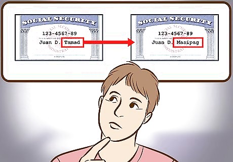 Follow all directions in Method One. You will need to provide all of the original documents required of someone applying for a brand new card, in addition to providing proof of your new identity. For example, in addition to your original birth certificate, you will need to provide a document proving a name change. Accepted documents include a marriage license, divorce decree, Certificate of Naturalization (which displays your new name), or a court order approving a legal name change. This name change document must: be recent (less than two years old for adults, or less than four years old for minors under 18 years of age) identify you by both your old and new identity