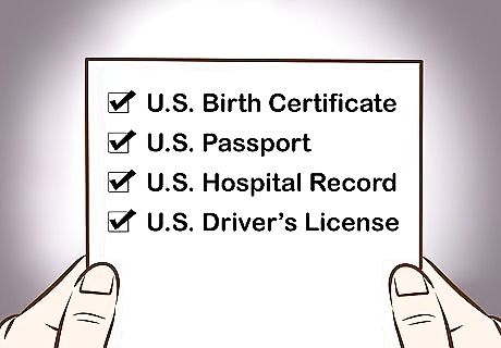 Gather the required documents. In order to apply for and receive a Social Security card, you will need to verify your age, your identity, and your status as a United States citizen with valid, unexpired identification documents. You must present the original copies of these documents. The only copies that will be accepted are those that were made and certified by the agency that issued those documents. There are three criteria that must be met, and you will need to be able to provide the following documents to meet each requirement: proof of citizenship, such as U.S. birth certificate or a U.S. passport a record of age and date of birth, including religious record showing date of birth, U.S. hospital record, or U.S. passport proof of identity, including a U.S. driver's license, a state-issued (non-driver) identification card, or U.S. passport. If none of these documents can be acquired or replaced within 10 days, other documents may be accepted, including an employee ID card, a student's school-issued ID card, a health insurance card (not including Medicare cards), or a U.S. military ID card.
