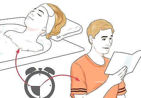 Look for small ways to maintain healthy space. Find opportunities throughout the week for small amounts of space. This is especially important in a romantic relationship if you and your partner live together. Try to have specific times during the day or the week where the two of you seek space. Have one night a week where you each go out with your own friends. Choose a few hours each weekend when you can spend time apart. For example, you can each agree to spend Sunday mornings pursuing your own activities. Do activities that require space, such as reading, taking a bubble bath, or going after a new job. While at home, remember to keep space in mind. If your partner is reading or working on something, don't interrupt. It's important to be able to indulge in solitary activities when at home.