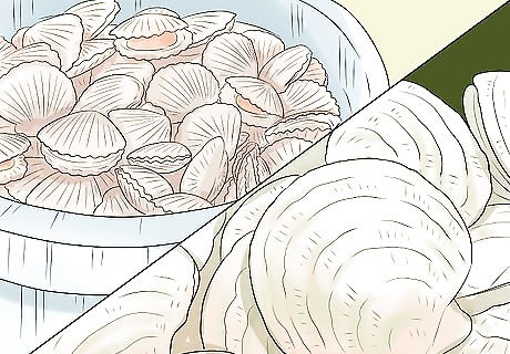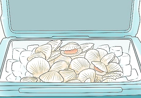 Chill the scallops in a cooler immediately after catching them. The cold temperature causes the scallops to die with their shells open, making the cleaning process much easier and faster. It also ensures the scallops stay fresh after leaving the water. Once you've put the scallops in the cooler, you can wait until getting back to the dock or home before cleaning them.