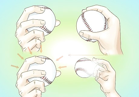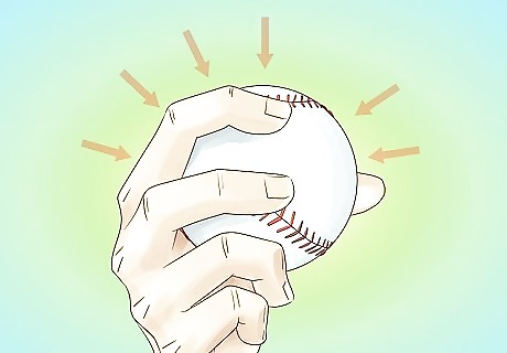 Squeeze the ball. The tips of your fingers should be slightly inside the seams against the smooth part of the ball just next to them, to give you a firmer grip. Your thumb should be tight against the bottom of the ball, pushing it against your fingers.