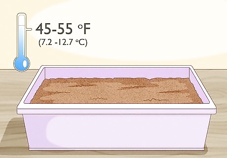 Fill a plastic box with peat moss or perlite. Both peat moss and perlite can be purchased at your local garden supply store. Once you have filled the box, place each bunch of rhizomes in the box, making sure that each plants rhizomes don’t touch one another. You can also put them in a brown paper bag lined with peat moss or perlite if you don’t have a plastic box to spare.