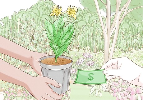 Purchase a pot with drainage holes. You will also have to choose your container based on the size of the variety of canna you are choosing to plant. If you are not sure how large your specific canna can grow, run an online search or ask someone to help you at your garden supply store. Remember, you can plant your cannas with other plants in your container, but just remember that all of the plants in one container must have the same water and sunlight needs or else they will not do very well.