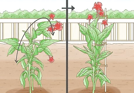 Give your taller cannas some support. If you notice that your taller cannas are a little droopy, tie them to stakes to help them grow and support their own weight. Learn how to stake your plants here.