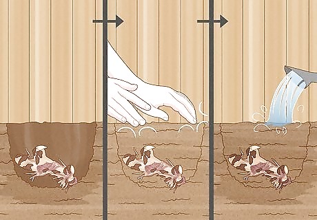 Cover the holes and the tubers with soil. Press the soil down and water thoroughly. Watering the area will help to settle the soil around the tuber.