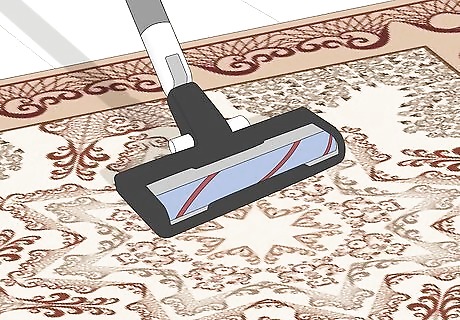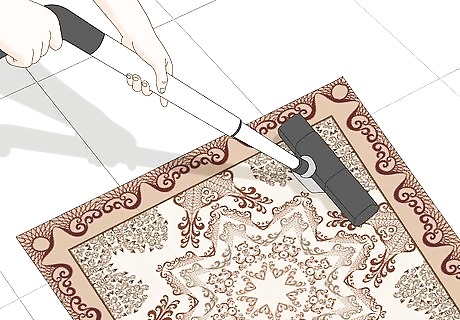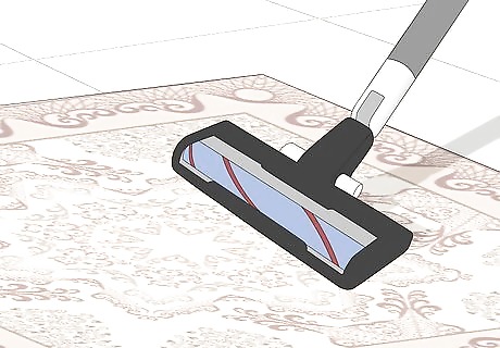 Vacuum the back side of the rug with a beater bar type vacuum cleaner. This loosens dirt and sand that has penetrated the rug’s pile and is trapped near the foundation.