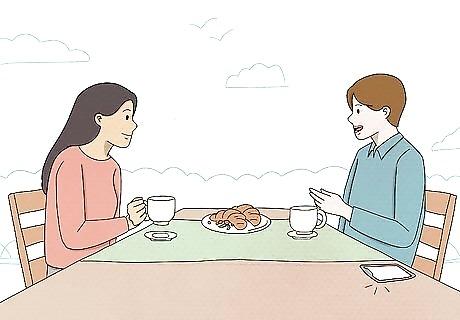 Consider ending the friendship. Sometimes the boy you want to back off is a friend. If he doesn’t respect your decision and keeps trying to initiate a relationship, then you may have to cut ties with him. While you don’t want to lose him, he’s not being a good friend to you. Additionally, he may believe that your continued friendship is a sign that you might actually like him. Distance yourself from him by saying “no” to spending one-on-one time with him. If you must cross paths with him, talk to your other friends about acting as a buffer. If he asks you to hang out, say, “I don’t think it’s a good idea for us to spend time together anymore.”