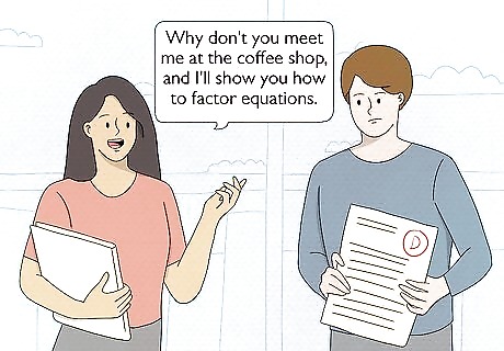 Create an excuse to talk to him. Find a subject that he knows about and see if you can get him to help you with it, or offer to help him with something you know he struggles with. It will usually give you a chance to hang out with him one-on-one. If he complains about his score on the math test, say, “Why don't you meet me at the coffee shop, and I'll show you how to factor equations.” Offer to be his lab partner in science class. Think of a sport you both like. For example, say, “Wow, you’re so great at tennis! Can you show me how you do your serve?”