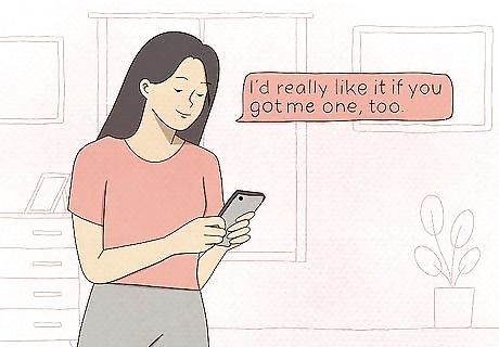 Say what you want. While it’s tempting to try to hint at what you want from a boy, he is unlikely to realize what you’re really wanting from a hint. Because he’s used to being direct, he’ll assume that you are as well. For example, if a boy is going to the smoothie shop and you’re hoping he’ll bring you one, don’t text him, “I’m totally craving a smoothie right now.” He will not get the hint. Instead, text, “I’d really like it if you got me one, too.”