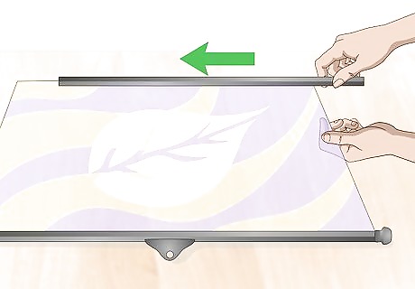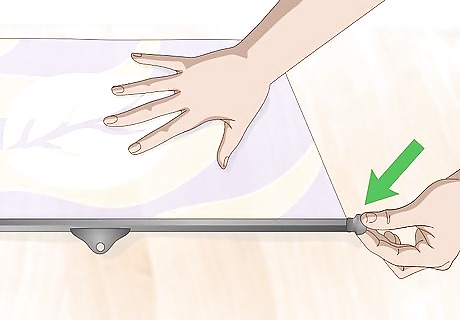 Insert the bottom edge of your silk poster into the other poster hanger. Just like you attached the top hanger, slide the remaining hanger into place at the bottom edge of your poster. If you are having difficulty, ask a friend to hold your poster by the top hanger. That way your poster won’t move around as much.
