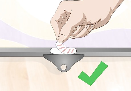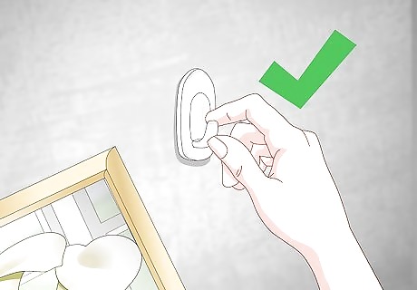 Use Command Strips to secure your hanger without using nails. Purchase Command Poster Hanging Strips at a craft or home supply store. Peel away the backing sheet, and stick 1 to the center of your hanger or 2 from either corner. If you’d like to add a bit more security, you can also stick Command Strips to the bottom hanger as well.