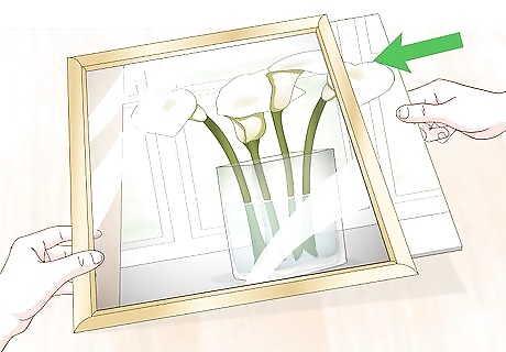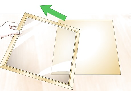 Disassemble your frame and set the cardboard insert to the side. Move the hinges out of the way, and take the cardboard out of your frame. You can slide the hinges away using your fingers. If you are having trouble, use a screwdriver to help. Your frame should come with a piece of cardboard in between the glass and the backing. If not, it will have a piece of cardboard as its backing.