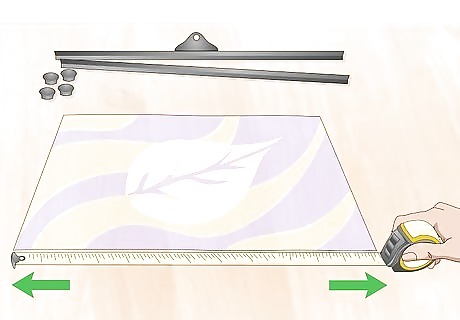 Measure the width of your silk and buy poster frames to fit your poster. Grab a ruler, and place it next the top edge of your poster to find its width. Then, purchase a poster hanger that is the same size or 2–4 in (5.1–10.2 cm) longer than your silk poster. Poster hangers are designed to be slightly longer than the size of your poster. You can purchase a poster hanger with either a string to hang from the wall or a clip to slide into the back of your top hanger. Most home supply stores have poster hangers, and you can also find them online.