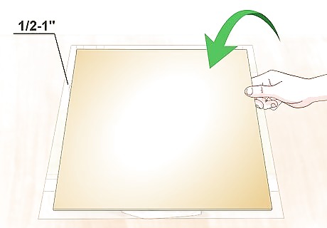 Lay your silk face down on a flat surface and sit the cardboard on top. Place your silk poster down so you are looking at the back of it. Then, place the cardboard on top of the silk in the middle. Ideally, your silk poster will stick out about ⁄2–1 in (1.3–2.5 cm) on each side of the cardboard.