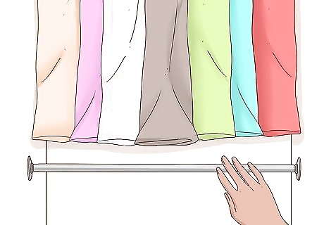 Install a tension rod if you have free vertical space. An extra rod can help you make use of space in your closet that you're not using, like the area above or below your clothes. This is especially useful if you have a lot of purses you need to hang. Just place the rod where you want it to go, then twist it until it's secured tightly against 2 walls. In addition to your purses, you can also use this rod to store your other accessories, like scarves, gloves, and hats.