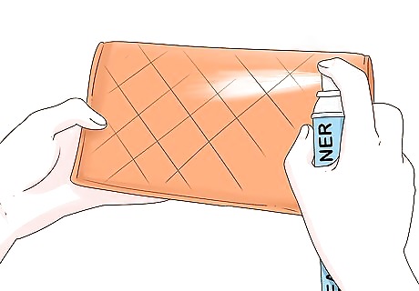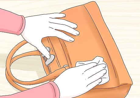 Wipe down your purse with a cleaner every so often. If your purse is made from leather, spray a little leather cleaner onto a cloth and gently wipe the surface of the bag to keep it shiny and protected from stains. Even if your purse isn't leather, you can protect it from spills and other damage by spraying it with a stain-repellant. Clean and moisturize leather bags about once every 3 months to keep them looking new.