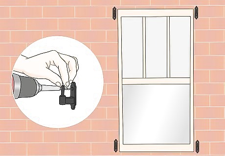 Replace the shutters or pintles against the wall. If you removed your shutters earlier, pick 1 to start with, and position it against the wall. If you are using pintle hinge shutters, slide a pintle under 1 of the top hinges on your shutter.