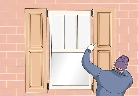 Paint or stain stationary shutters, if desired. Cover the brick wall around each shutter with strips of painter's tape. Apply your desired paint or wood stain, then let it dry. Once it dries, peel the tape off. If you screwed the stationary shutters in rather than using shutter fasteners, fill the holes in with wood putty first. Let the putty dry before painting the shutter. If you used shutter fasteners, you should paint over them so that they match the rest of the shutter.