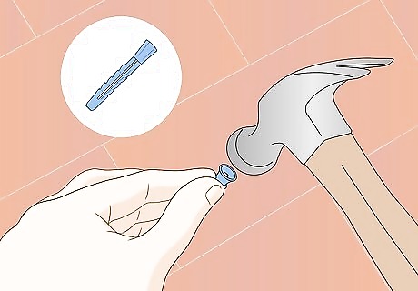 Insert the wall anchors, if you are using them. Set your first wall anchor into your first pilot hole. Gently tap it into place with a hammer or mallet. Repeat this step for all of the pilot holes and anchors. You do not need wall anchors for shutter fasteners. You can use wall anchors for stationary shutters with seamless screws, however.