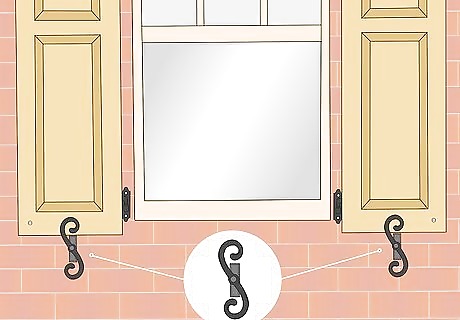 Add other accessories for hinged shutters, if needed. Some window shutters contain extra items, such as holdbacks. Once you have the shutters installed, you can add these extras. Remember to mark the pilot holes with pencil first, and to drill the holes into the brick with a hammer drill and masonry bit. You can add these accessories to stationary shutters too, but they are not necessary.