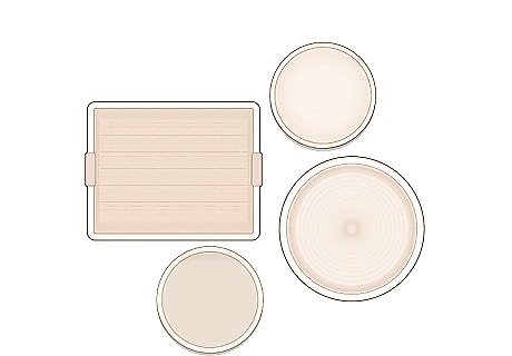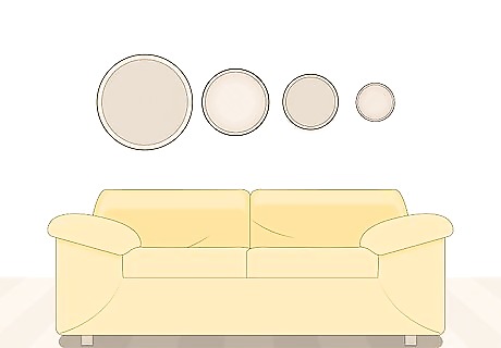 Arrange your baskets above pieces of furniture to serve as a decoration. Find a piece of furniture that serves as the focal point of your living space, like a sofa or table. Choose a section of wall space above these furnishings to serve as the backdrop for your wall decor. You can create a close-knit piece of wall art by overlapping the baskets, or you can arrange them side-by-side to place special emphasis on the individual designs. For instance, you could place a tightly woven basket tray next to a loosely woven basket. Feel free to mix and match with different basket shapes as you create your own unique wall art!