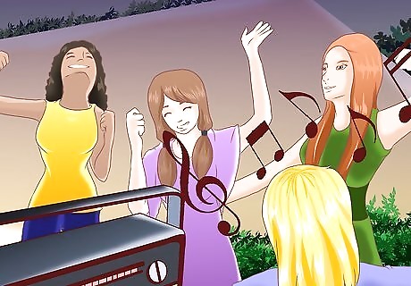 Play Spin The Bottle Truth or Dare/Would You Rather. This game is a must for girly sleepovers. After the film, take one of your empty pop bottles and find a flat surface. All the girls sit in a circle around the bottle and one person spins it. Whoever the bottle top lands on is asked by the girls a question of Truth or Dare or Would You Rather. This is a great way to break the ice, have a laugh, and find out more about each other.