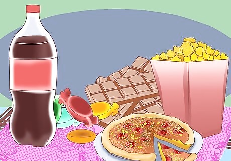 Get loads of delicious food. Ask your guests to bring a bag of sweets/chocolate/candy with them, and you can provide the rest. Bring popcorn, fizzy drinks (with plastic cups), pizza, sweets and chocolate. It may be a good idea to bring a small rubbish bin and put it in the tent for all the leftover treats.