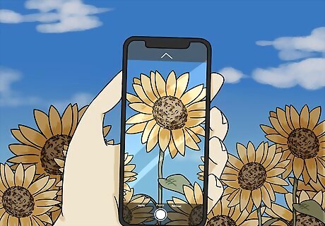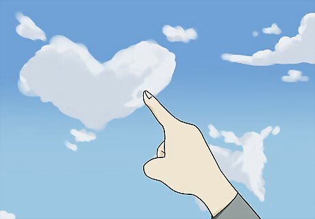 Find shapes in the clouds if you want to use your imagination. Lie somewhere that allows you to look up at the sky and see the clouds passing by. Use your imagination to think of what the clouds are shaped like so you can be creative. Try watching the same cloud for a long period of time to see how it changes shapes as it moves. Draw what you see on a piece of paper so you don’t forget the shapes you found and can show them to someone else later. Wear sunglasses if it’s a bright day so you don’t have to squint your eyes. Don’t look at clouds that are in the same place as the sun since you could hurt your vision.
