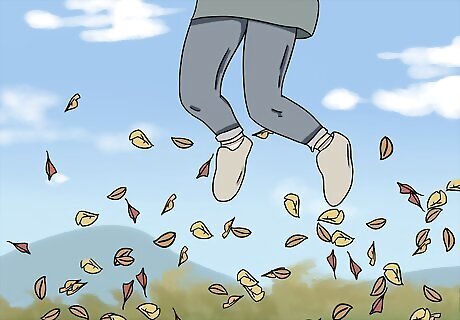 Jump in piles of leaves for fun in the autumn. Wait until most of the leaves have fallen off the trees so you can make the biggest piles. Rake the leaves into large piles before jumping into them. Always jump feet first so you don’t hurt yourself when you land on the pile. Rake the leaves again if the pile breaks up so you can jump in them again. There may be bugs living in the dead leaves, so be sure to brush yourself off after jumping in the leaves to get them off. Collect some of the leaves you rake if you want to identify which tree they came from later on.