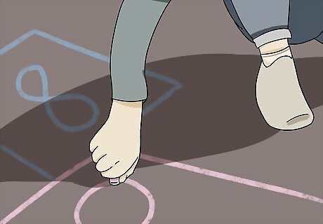 Draw on the pavement with sidewalk chalk if you want to be creative. Sidewalk chalk is a great way to decorate a driveway or sidewalk. Get a box that has multiple colors inside so you can make detailed drawings. Practice your drawing skills and make designs on the pavement so it’s pretty to look at. Take pictures of your drawings so you can remember them before they get erased. If you don’t like your drawing, rinse them off with water and let the pavement dry. Try drawing a hopscotch design on the ground and playing to see how far you can get.