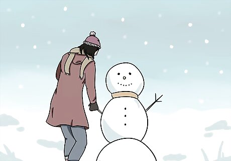 Build a snowman if you want a relaxing winter activity. Make a small snowball in your hand before rolling it through the snow on the ground. Once the first snowball is about 2 feet (61 cm) across, place it where you want your snowman. Start rolling another snowball until it’s 1 ⁄2 feet (46 cm) wide and set it on top of the first. Add a third snowball for the head. Decorate your snowman so it has eyes, a nose, a mouth, and arms. Wet snow works best for making a snowman since it sticks together easier and forms into balls. Be sure to wear snow gear while you’re outside so you don’t get too cold. Give your snowman a hat and scarf if you want to include additional accessories.