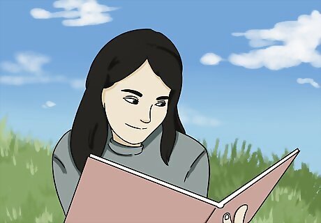 Lie in the grass with a book if you want a relaxing day. Find one of your favorite books or one that you haven’t read yet, and take it outside with you. Find a comfortable spot in a grassy area that’s under a tree or in the shade so you can relax without the sun getting in your eyes. Spend time reading your book without distractions while you get some fresh air. If you can’t lie in the grass, try spreading out a blanket on the ground instead. You can find a comfortable chair or hammock if you can’t lie directly on the ground. Listen to music in headphones while you read if you live in a loud area.