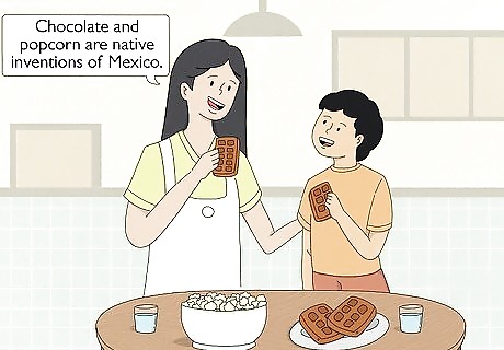 Share interesting information about your child's native culture with them. Showing your adopted child that you value and respect their native culture will make them happy and inspire them to do the same. For instance, if your child's native culture is that of India, explain to your child, “One of the world's greatest leaders, Mahatma Gandhi, is from India.” Ask your child if they have knowledge of the religious traditions of their native culture. For instance, if your adopted child is from India, you could ask, “Do you know that in India, cows are revered as sacred animals?” Share inventions of your adopted child's native culture with them. For instance, if your adopted child was born to Mexican parents, you could say, “Chocolate and popcorn are native inventions of Mexico.”