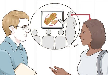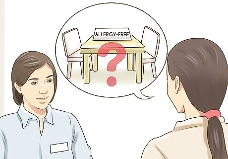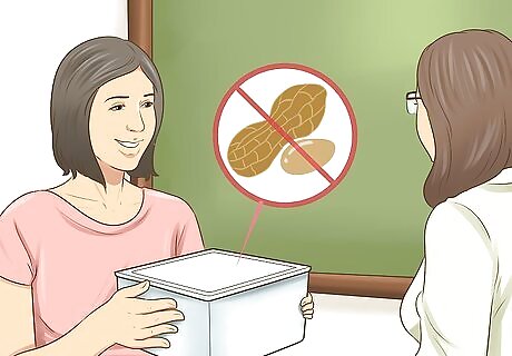 Request allergy-free tables. Some schools require children with allergies to eat by themselves to possibly prevent them from eating any of their classmate’s food and having a reaction. Doing so often causes isolation and sometimes ostracism. You may be able to stop that from happening by requesting the school designate allergy-free tables for children with allergies. Talk to the principal about this request. Let them know that setting aside a few tables for kids with allergies to eat at is far easier than issuing a school-wide ban on peanuts and other common allergy foods, which is something you have the right to do.