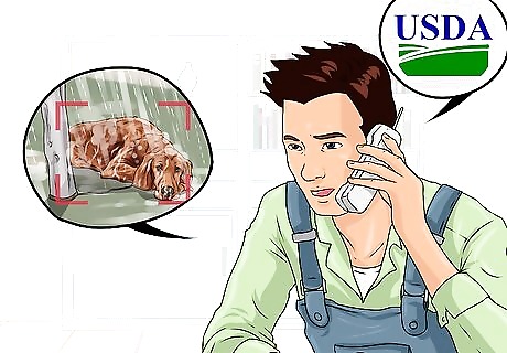 Find evidence of neglect. Because puppy mills are permitted under the AWA, you may have to prove that there is extreme neglect in the mill to force it to close. This can be extremely difficult to do. As long as puppy mills provide the dogs with basic food, water, and shelter, they can keep as many dogs as they like, even in dismal conditions. That said, you can start to slowly build a case. If the dogs are sheltered outside in kennels with no protection from the elements, you may be able to make a case for animal neglect. If you know of sick puppies that came from the mill, you may be able to demonstrate that the mill is not providing sanitary care. Never trespass on property or break into a facility that you suspect might be a puppy mill. You can be arrested, and this will not help close the puppy mill. Instead, gather what information you can legally, and file a report with the authorities.