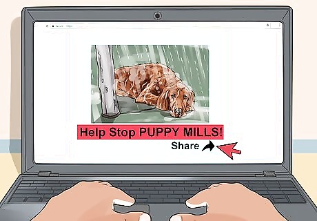 Share articles on social media. When you find news stories about puppy mills, share them on social media so that your entire social network can learn about the abuses and problems caused by puppy mills. This will help prevent others from buying from mills. You can also share links to petitions or donation drives to help shut mills down.