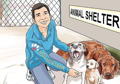 Volunteer to work at a local animal shelter. Animal shelters are often in dire need of volunteers to help walk, feed, clean, and socialize their dogs. By volunteering, you’re helping them reduce costs, and enabling more dogs to find homes. Many animal shelters will post forms on their websites for volunteers. Volunteering is a great way for younger advocates to get involved in caring for animals.