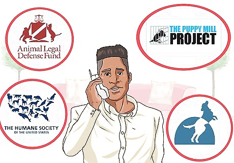 Inform an animal defense organization. It can be extremely difficult to shut down a puppy mill on your own, and it is not advised that you contact the mill yourself directly. Instead, reach out to a local or national organization with experience in animal defense. They will be prepared to handle the legal aspects of the closure. Some places you might call include: Animal Legal Defense Fund Humane Society of the United States The Puppy Mill Project National Mill Dog Rescue