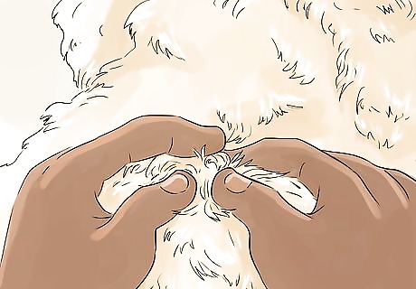 Detangle pet fur. If your pet has long or thick fur, check daily for any debris stuck in the coat, tangles, or mats and remove these carefully. If your pet has shorter hair, you’re likely to see these items and be able to easily pluck them from the coat. Take a few minutes to run your hands through your dog's coat from head to tail. You're looking for burs, matted hair, sticks or debris, bugs and ticks, or any other foreign item your dog's coat has acquired.