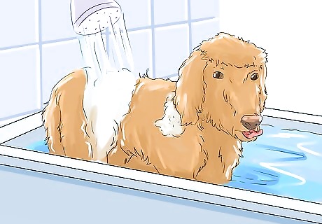 Bathe your dog regularly. Cleaning dogs about once a month or every other month will help you keep their fur and skin clean and free of irritants. Dogs are susceptible to illness that can occur due to the presence of bugs, mites, ticks, and other irritants that access your pup through their skin. Bathing helps to prevent these issues, and gives you the opportunity to check your pup’s fur and skin for potential issues.