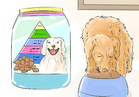 Feed your dog healthy meals. You can purchase nutritionally complete dog foods that contain appropriate amounts of protein, fat, and vitamins based on your dog’s breed, size, and age. Talk to your vet about what foods are available to promote your dog’s health, and always read your pet food ingredients to ensure real, whole foods are listed rather than unrecognizable, chemical additives. You may also want to consider preparing meals for your dog at home. Again, the best place to start is with a visit to your vet for recommendations. Always have fresh water available to your dog to ensure they are hydrated. Don’t give too many treats. They are often high in sugar, and over time, too many treats will lead to weight gain. A number of canine health concerns such as hip dysplasia and diabetes are exacerbated by excess weight.