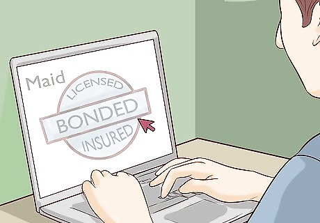 Pick a maid that’s bonded and insured. This helps protect you as well as your maid. Choosing a maid that’s bonded and insured makes sure that your possessions are protected from theft and accidental damage. Check the maid’s website to see if they’re bonded and insured, or call to ask them if you’re not sure. It also protects your maid if they have an injury while cleaning your house so neither of you have to pay out of pocket.