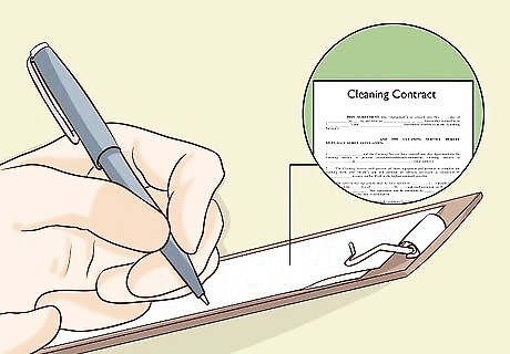 Create a contract with your maid to put everything in writing. If you hire your maid through a large company, it's possible that they will already have a contract that you can help create and sign. If you're hiring an independent maid, consider writing up a contract detailing which services the maid is expected to complete, how much you'll be paying them, and protocol for different scenarios like the maid not showing up or damaging a piece of furniture. Go online to find examples of maid contracts, as well as contracts you can even fill in with your own information to make the process easier. Some maids may have created their own contracts for you to sign.