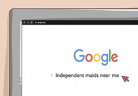 Hire an independent maid for a less expensive option. An independent maid works for themselves, not a company. Since they're only responsible for themselves, independent maids are often cheaper than maid companies, but they do have downsides too. It may be more difficult to find out the details about an independent maid's training or background, so you'll want to look at their reviews more heavily to see if they come recommended. Type "independent maids near me" or something similar into an online search bar to find maid options to look through.