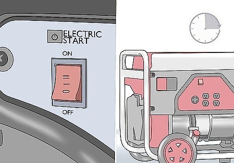 Let the generator run for at least 5 minutes then flip the circuit breaker. Allow the generator to warm up before you use it so it doesn’t sputter or get overloaded. Wait about 5 minutes, then flip the circuit breaker to the “On” position so you can start to use the generator to power your devices. Check the owner’s manual to see how long you need to let the generator run before you use it. Cold weather conditions may require you to let the generator run for longer to warm up properly.