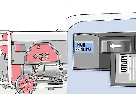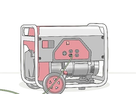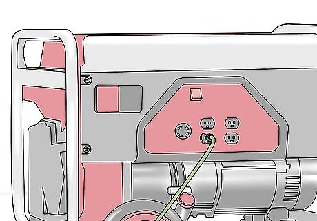 Start up your generator. Check the fuel gauge on your generator to make sure there’s enough fuel in it and make sure the circuit breaker on the generator is in the “Off” position before you start it. Turn the fuel valve to the “On” position when you’re ready to start it. Use the start switch or button to start the generator.Tip: If you don’t have an electric start generator, you need to pull start it. Flip the engine control switch to “On” or “Run,” grab the handle on the recoil rope, and pull it 1-2 times to start the generator.